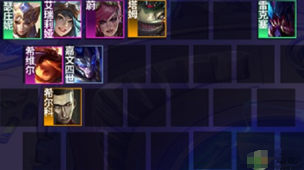 配置:嘉文四世+瑟庄妮+雷克塞+艾瑞莉娅+蔚+希维尔+塔姆+希尔科