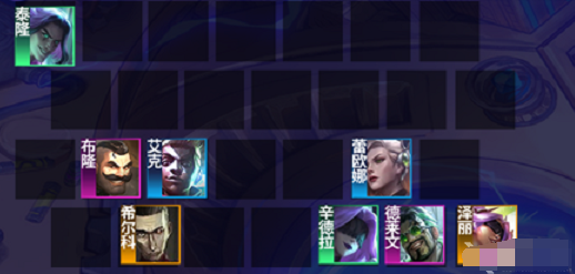 1、阵容组成:布隆+男刀+辛德拉+蕾欧娜+艾克+德莱文+泽丽+希尔科
