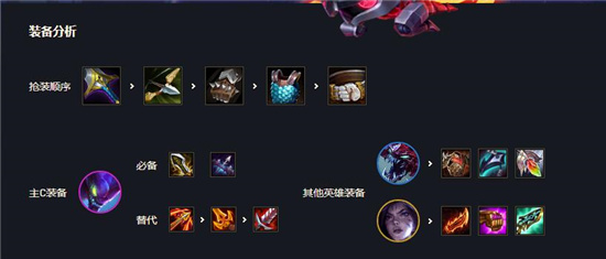 1、主C螳螂装备:必选最后的轻语、无尽之刃、次选飓风、饮血剑、死亡之刃
