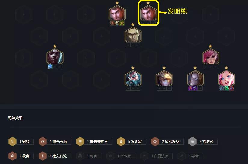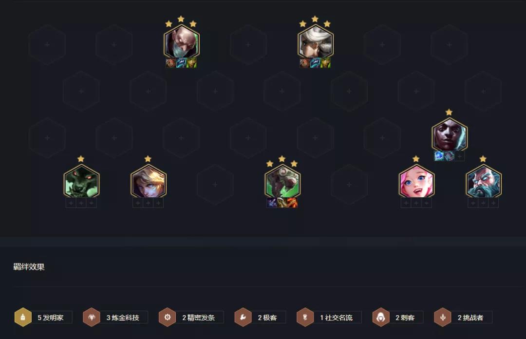 发明家拼今天被小砍,不得应该是版本T0阵容,被削弱后经过测试依然可玩,强度颇高,这套阵容与双城发明家拼变化不大,依然是萨勒芬妮主C和杰斯为核心,但由于这赛季有神卡希尔科杰斯和发明熊开局就可释放技能比较快,而发明熊的第一次自暴还能为阵容增加输出点。