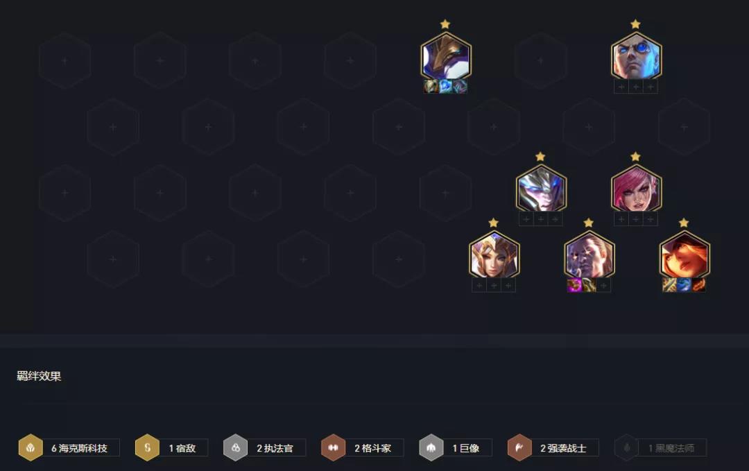 海克斯科技羁绊是季中赛季更新的羁绊效果,每隔几秒就能给阵容海克斯棋子增加护盾,在护盾持续期间攻击会携带魔法伤害,而阵容主C希维尔(轮子妈)技能可增加高额攻速,完美利用海克斯羁绊,输出效果极其爆炸。