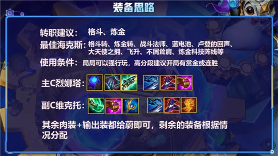 主坦蔚:格斗体系只有生命值加成没啥抗性,所以肉装优先做狂徒索性把生命值拉满;第二件可以出离子或冰心,削减敌人魔抗或攻速,提升后排输出;最后可选择泰坦叠双抗,也可以看外面阵容在反甲、龙牙、里做选择。