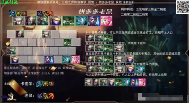 这是一套完全不需要运营的阵容,这套阵容是拼多多老鼠,属于赌狗流玩法,主C都是低费卡,不怕拿不到牌,且连败可以拿装备,主C神装成型快。