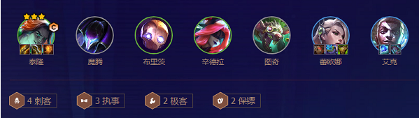 2、阵容羁绊:4刺客3执事2极客2保镖