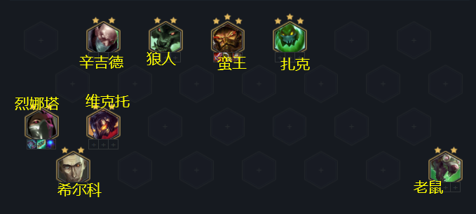 希尔科、老鼠、烈娜塔、维克托、辛吉德、狼人、蛮王、扎克