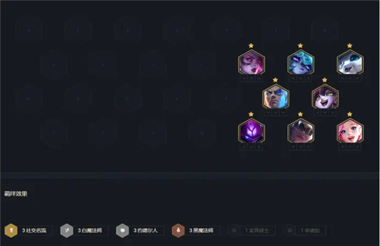 4-1升7级,基本凑成2名流,3白膜3黑膜。如果有名流羁绊,可以把黑魔下了换萨勒芬妮。