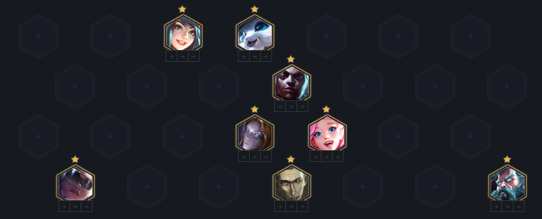 3阶段选秀回来后开始提速,卖掉场上无关卡,搜卡优先凑齐3名流+3发明,直至纳尔2星再停手,纳尔2星配合蓝BUFF+3名流稳定锁血。