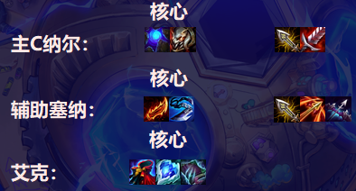核心羊刀,塞纳不是特别挑物理输出装,毕竟不是塞纳主C,所以捡捡纳尔剩下的破烂就行,有强袭战士转职的时候直接给塞纳即可,塞纳是体系中最合适强袭转的。