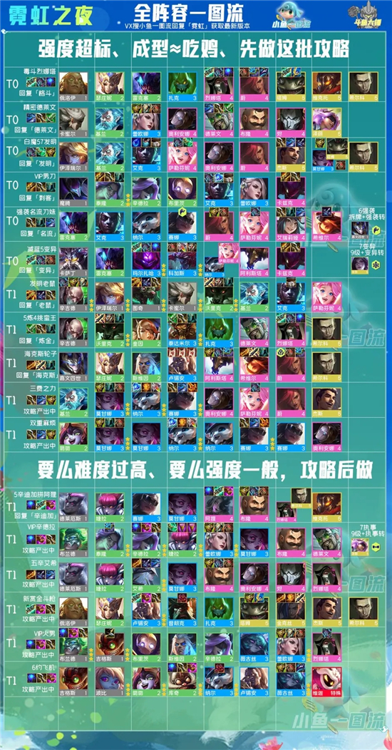 强烈建议其中一人追3星4费:有忠诚符文,队友直接2星2星带你需要的装备送过来,很容易3星4费,比如当下大热的强袭名流刀妹、发明家螳螂、VIP男刀里的螳螂、减蓝变异里的螳螂、海克斯里的电刀轮子妈、毒斗里面的烈娜塔、百搭进任何队伍里的蔚,任何一张到3星都是保送第一第二的。