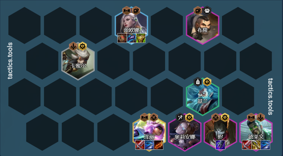 因此这套阵容开局无法直接清掉前排的英雄,前排没有足够的坦度情况下,德莱文是完全站不住的。再次强调,除了德莱文的装备以外,前排坦度非常重要,非常重要!