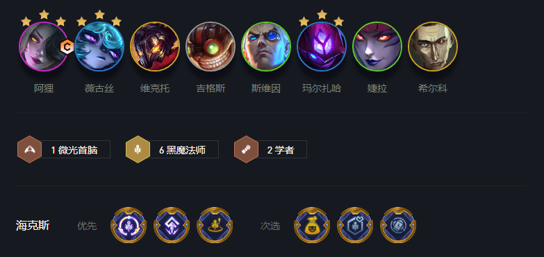 这版本高黑魔收益高,有黑魔+1,+2,直接无脑拿,准没错;开局升级咯无脑拿,后面来的话,高端购物会更好;妙手空空或二进制这类海克斯都可以增加这套阵容的上限;蓝电池、冥想、源计划链条都能加快回蓝,很适合黑魔这阵容。