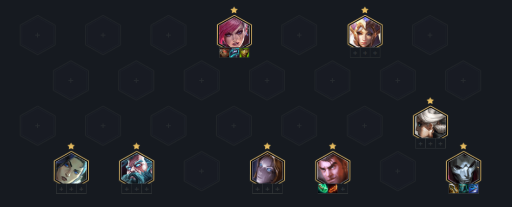 开局选秀直接拿短弓,大棒开局2-1上4人口,2-5上五人口,组成2精密2极客3发明,前期的话优先做烬的装备给过度旗子(发明家就给EZ)打工,尽可能打连胜升人口到8开始大搜。