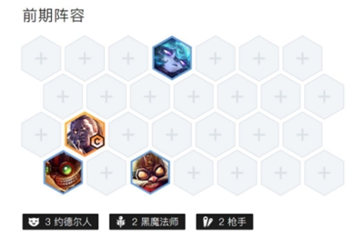 羁绊:6黑魔法师、1宿敌、2极客、2海克斯科技和2枪手。