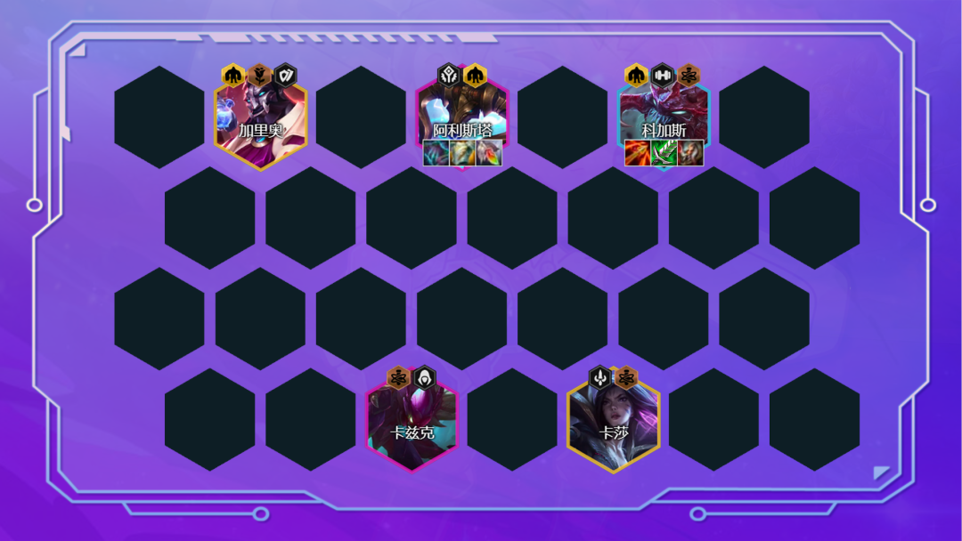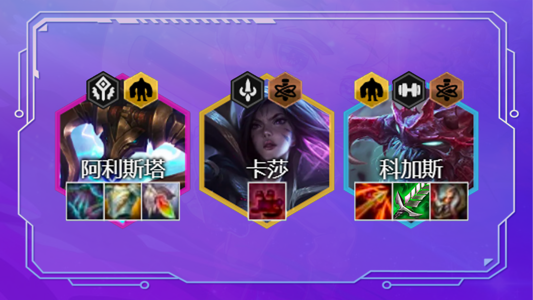阵容组成:科加斯、阿利斯塔、卡兹克、卡莎、加里奥