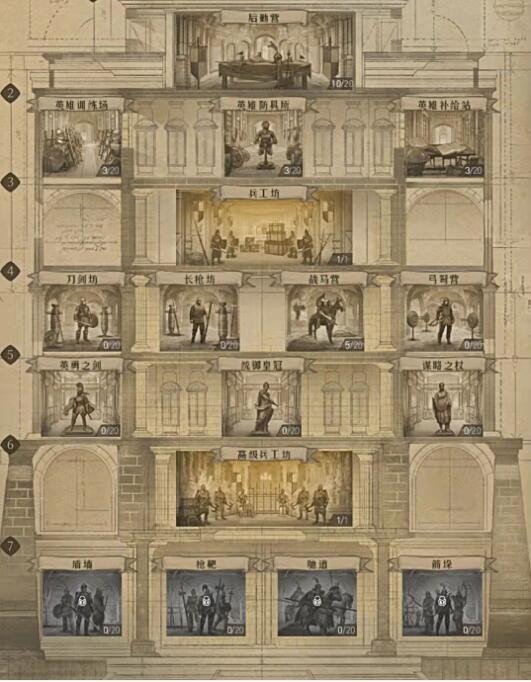 士兵是开疆扩土的核心基础,兵营的提升能加快士兵的训练数量、训练速度。配合时代,兵营在达到5、10、15三个等级时,还会产生质变。