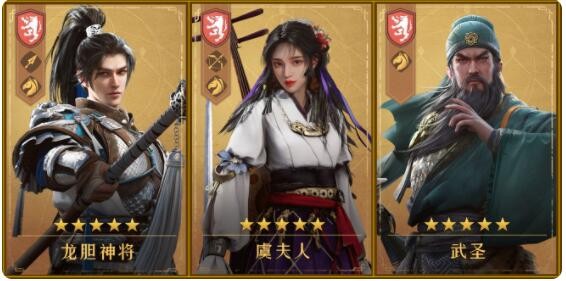 龙胆神将可通过基金领取,武圣和虞夫人可通过首充奖励获取,后期可用假面将军换下虞夫人,组成完全体连击骑。