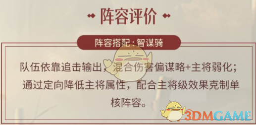 队伍依靠追击输出,混合伤害偏谋略+主将弱化;