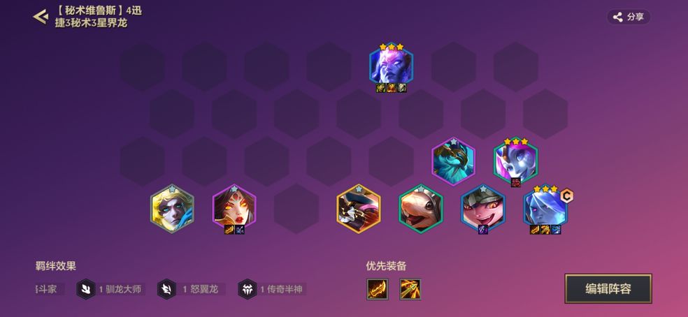 射手上分阵容。前期拿塔姆打工,因为塔姆很肉,然后凑3星界龙,看情况d牌。