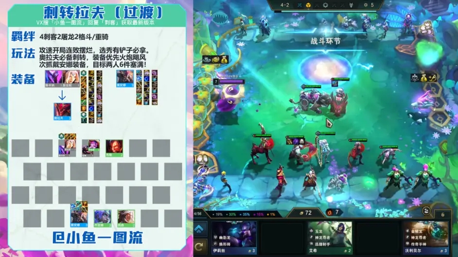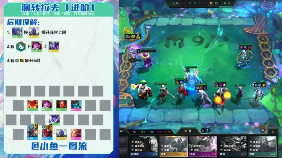 7级重点要做的事:通过系统给的对战预测,去抓对方的后排脆皮,2星满羁绊的拉夫劈谁谁死