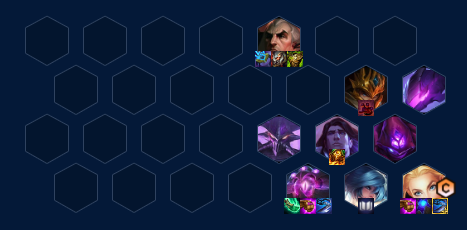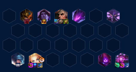 这套法师阵容有点像以前的黑白魔,如果前期胡法师牌,且有肉装过度,可以选择2阶段走连胜3阶段拉6人口划水,4-1拉七级大搜一波,开出六法,乌鸦多可以选择7级追三,反之就上八。后面卡萨丁和蚂蚱可以换成奎桑提和狐狸。如果拿鲜血转换,可以2阶段连败,3-2拉6级大搜一波,根据乌鸦和大眼的数量,可以选择7级开3法4术士3德玛赌大眼和乌鸦,数量少就存钱上八,用拉克丝来C。