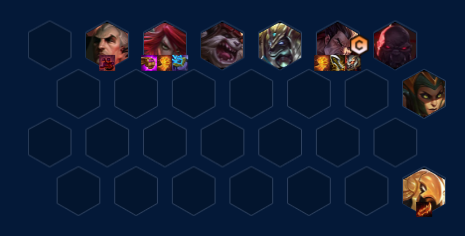 传说之力就选当前版本最强力的卡牌。瞎子是为了保证诺手和卡特的三星。小法是一个顶级战力输出海克斯!地区传送门是为了要转职,七人口即可成型!