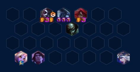 针对3费卡为主C的阵容。一般情况下2-1升4,2-5升5,3-2升6,4-1/4-2升7。前期尽量用强势棋子与羁绊打工,保证打工棋子2星稳定血量健康。尽早步入7级,开始提升阵容中的3费卡质量,尽量将主C提升至三星。后续再视情况上更高人口。