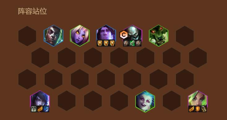玩法:前期用2堡垒,2暗影岛,2祖安打工,厄加特的装备先给佛耶戈用着,优先三星艾克