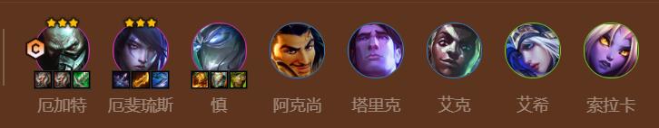 阵容推荐:螃蟹,厄斐琉斯,慎,阿克尚,塔里克,艾克,艾希,奶妈