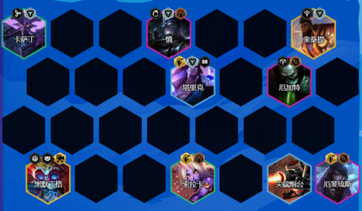 阵容组成:厄斐琉斯,慎,奎桑提,黑默丁格,厄加特,塔里克,卡萨丁,索拉卡