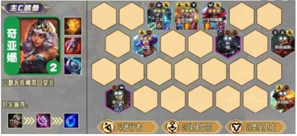二、羁绊:4潜行者、3以绪塔尔、2卫士、2祖安、2神谕