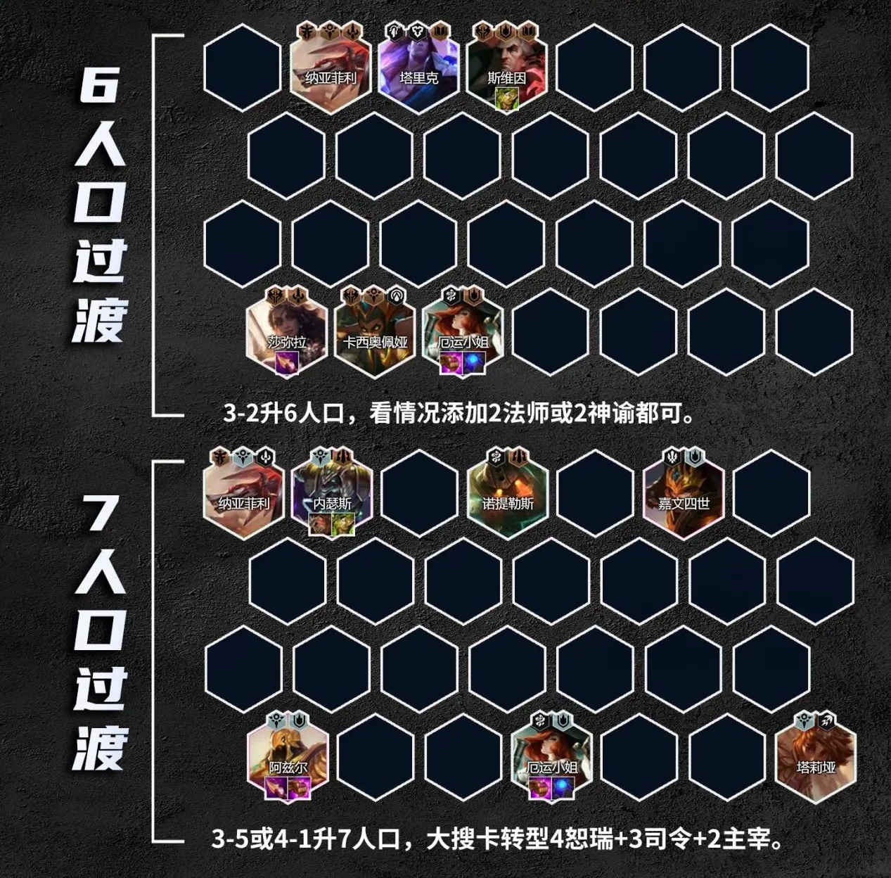 3-2升6人口,诺克过渡看情况添加2法师或2神谕都可。