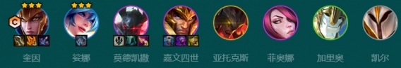 开局有德玛转,优先开5德玛过渡,有奎因优先搭配凯尔和娑娜开5德玛,前排可以找两星卡萨丁或俄洛伊带德玛转,吃光明肉装过渡。没有奎因可以用两星莎弥拉带德玛转吃光明光辉之刃过渡。