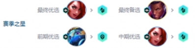 3。赛季之星前期可以选择凯南来给前期打工,等到7级之后可以开始找厄运小姐的赛季之星,如果一直没有可以找5费卡的赛季之星。