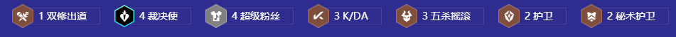 1双修出道、4裁决使、4超级粉丝、3K/DA、3五杀摇滚、2护卫、2秘术护卫