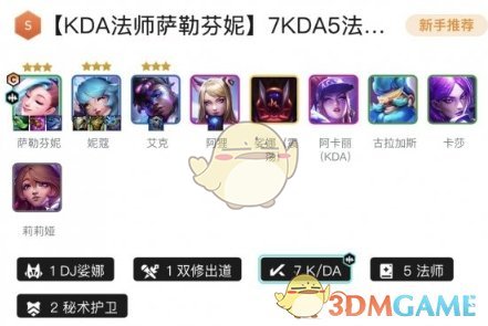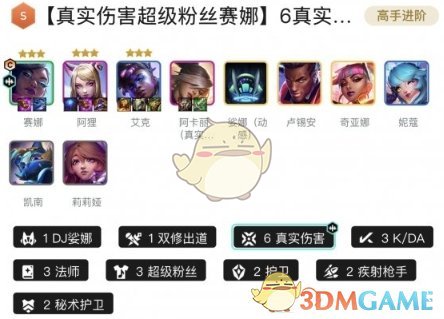 1DJ娑娜、1双修出道、6真实伤害、3K/DA、3法师、3超级粉丝、2护卫、2疾射枪手、2秘术护卫