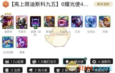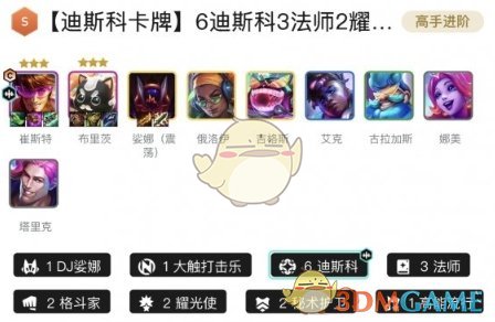 1DJ娑娜、1大触打击乐、2耀光使、6迪斯科、3法师、2格斗家、2秘术护卫、1高能流行