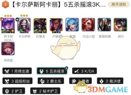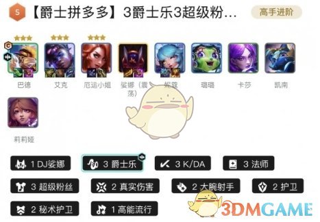 1DJ娑娜、3爵士乐、3K/DA、3超级粉丝、3法师、2真实伤害、2大腕射手、2护卫、2秘术护卫、1高能流行