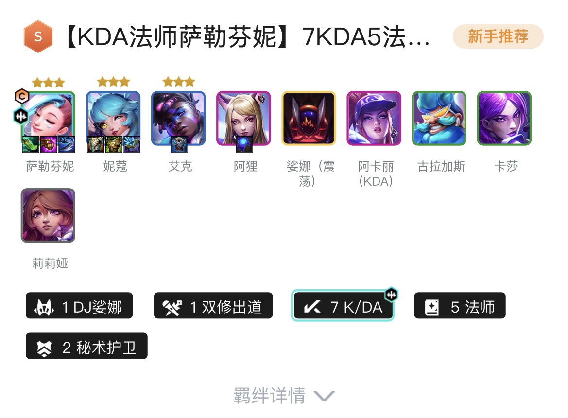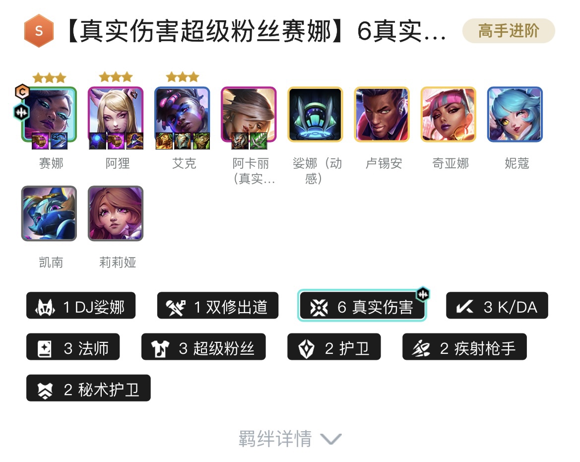 1DJ娑娜、1双修出道、6真实伤害、3K/DA、3法师、3超级粉丝、2护卫、2疾射枪手、2秘术护卫