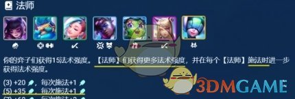 5法师羁绊能增加全员35法强,特别是法师棋子每次释放技能都会增加1法强,特别是阵容中的璐璐、阿狸、萨勒芬妮法力值较低技能释放比较频繁法强的收益较高。