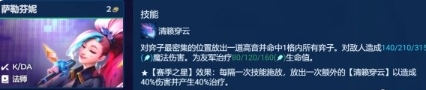 但其实萨勒芬妮的技能缺点也比较大,技能是找敌方最密集的敌方,这样经常出现打不死敌方前排残血的情况,这点比较憋屈也是云顶不强的原因(感觉铲子棋盘小)。阵容一定要有副C阿狸,这样站在一面能帮萨勒芬妮清理掉残血棋子。
