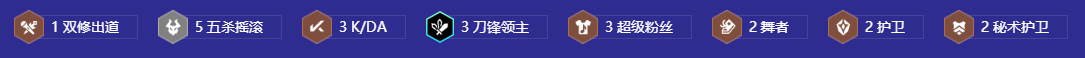 1双修出道、5五杀摇滚、3K/DA、3刀锋领主、3超级粉丝、2舞者、2护卫、2秘术护卫