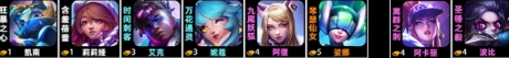 KDA赛季之星:凯南、莉莉娅、妮蔻、艾克、阿狸、娑娜、阿卡丽(KDA)、任意四费前排战士