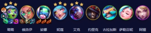 璐璐、俄洛伊、娑娜、妮蔻、艾克、约里克、古拉加斯、萨勒芬妮、阿狸