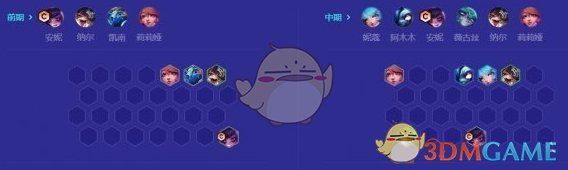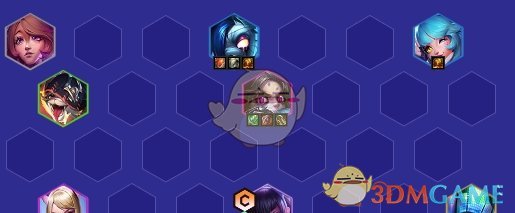 第一种站位是根据KDA格子来站的,虽然只有3KDA但是加成很重要。安妮站在中间即可。其余棋子分散开