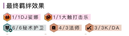 1DJ娑娜、1大触打击乐、6秘术护卫、3法师、3KDA