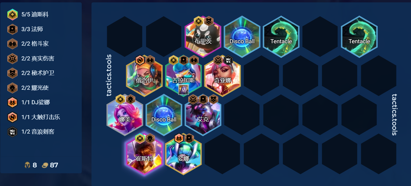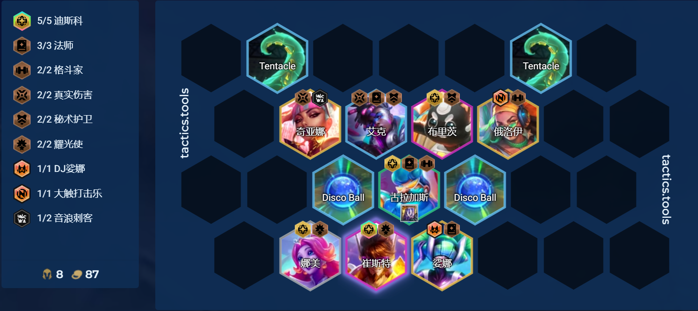 适合阵容:迪斯科卡牌、6秘卫阿狸、真伤赛娜等