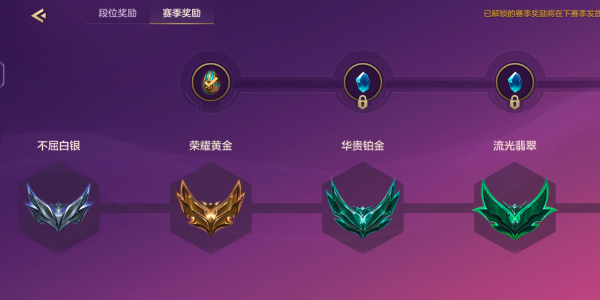 一、在目前的S9.5赛季中共有10个段位,在铂金段位和钻石段位间新增加了翡翠段位。因此段位排名分别是坚韧黑铁、英勇黄铜、不屈白银、荣耀黄金、华贵铂金、流光翡翠、璀璨钻石、超凡大师、傲视宗师、最强王者。