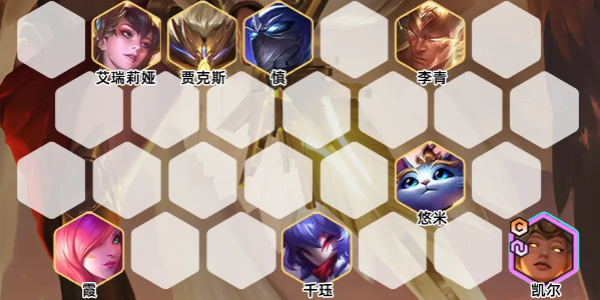 1、阵容组成:慎、艾瑞莉娅、贾克斯、李青、悠米、霞、千珏、凯尔