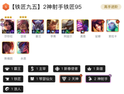 1、作为福星爱好者必走的一套阵容,几乎没有什么玩家能够抵挡天选福星的诱惑。