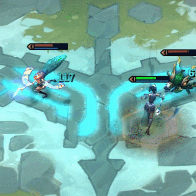 拉克丝朝着最远处的敌人释放出一只灵兔,对一条线路径上的敌人造成魔法伤害,每次命中敌人减少30%伤害,前两个敌人眩晕1.5秒